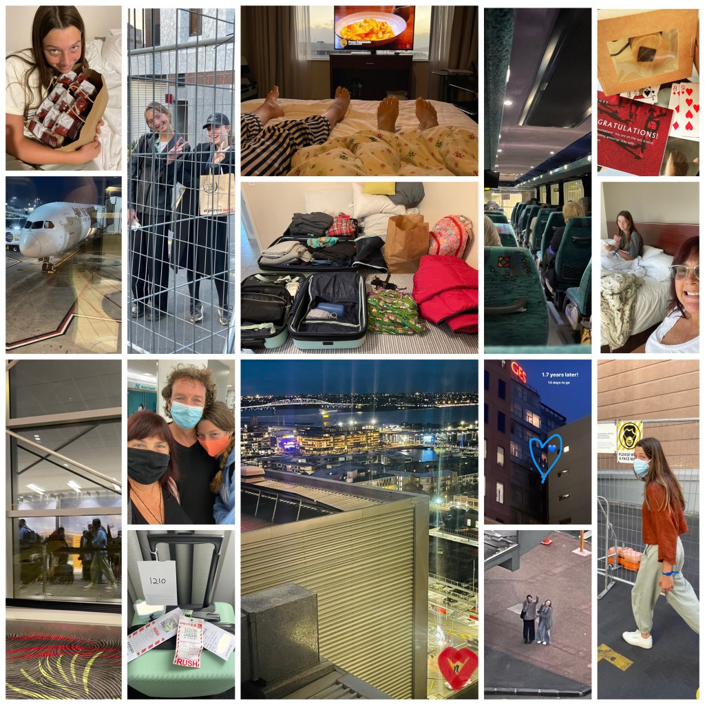 We’re here—the final day. Isolation seemed like it would feel like forever yet passed by in a blink. All of our days started running into each other, and with little variety in our activity, every morning felt like groundhog day. We’ve driven by car, flown two flights, taken one bus, and stayed in two hotels over 16 days to get to where we are now, and still, our NZ adventure is only just about to begin. We have eaten, slept, eaten, played games, slept, read, written, and binge-watched. We have laughed, thought deeply, jumped on beds, stared for hours out the window, and snuggled in front of the TV. We had repeated Covid tests and daily health checks. And dreaded the ringing of our phone in fear of that call, saying, “surprise, you’ve come back positive, and we’re moving you out of this hotel to Jet Park for an extended stay!” Our tests have all come back negative every time. We were aware that Covid could be lurking anywhere. And as it happened, a woman on our exact flight and in our hotel tested positive for Covid. They moved her on day two of our time here. We wish her well.