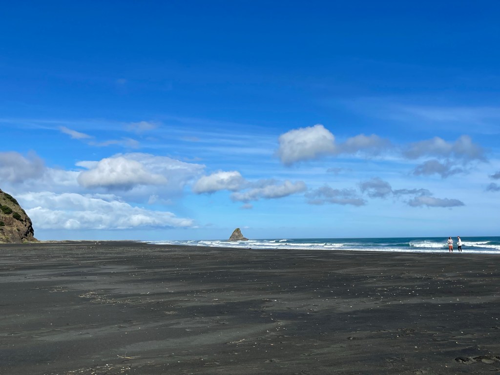 The first time I approached the Piha waves was over fifteen years ago. The rolling fold of water with its white spray is powerful and humbling. We drove the long winding roads and sang old familiar songs along the way. We walked through the black sand, and the memories of our babies running at our feet in days now gone rushed in and out with the crashing tide. I heard childish laughter in the cry of the birds above, imagined their tiny eyes looking up at me in excitement, and saw footprints in the sand. I imagined Nick running free and thought of how Binx and Ollie would love it here. They would be living their best lives. Picture our dogs chasing the birds into the water, tearing off across the beach, kicking up clouds of earth in their wake. Paul and I felt joy watching our children play with nick, growing and thriving in this wholesome grounding environment. It feels good to be here. It feels good to see our girls, now young women, find their way among this beautiful piece of earth and sea.