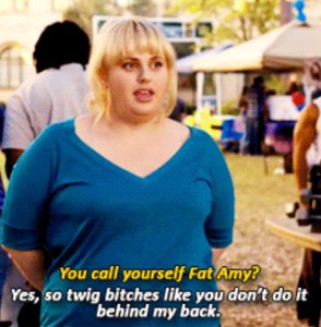 I love the moment in Pitch Perfect when Fat Amy (Rebel Wilson) Is asked about her name,
